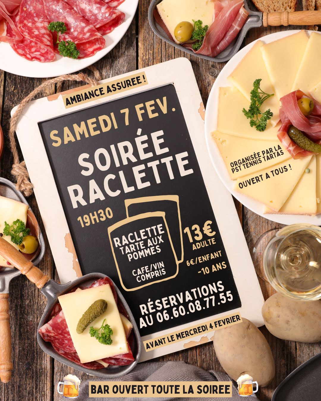 La PST Tennis Tartas organise une soirée raclette le 7 février, ouverte à tous.